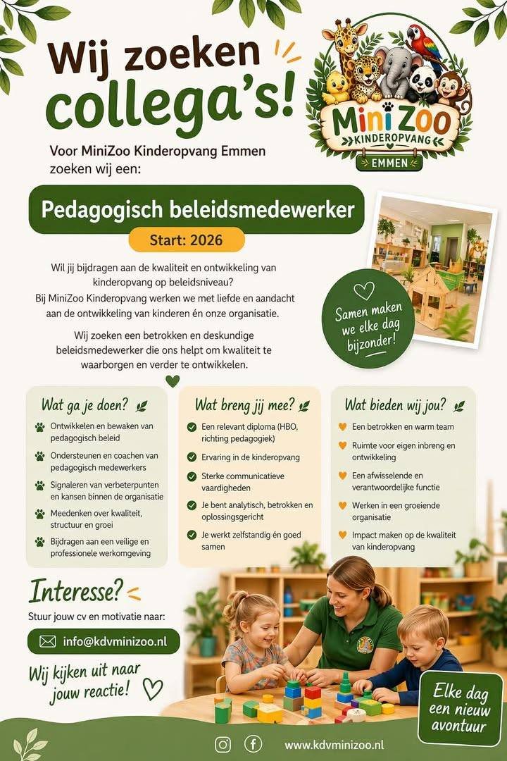 Twee leuke vacatures bij MiniZoo Kinderopvang in Emmen!